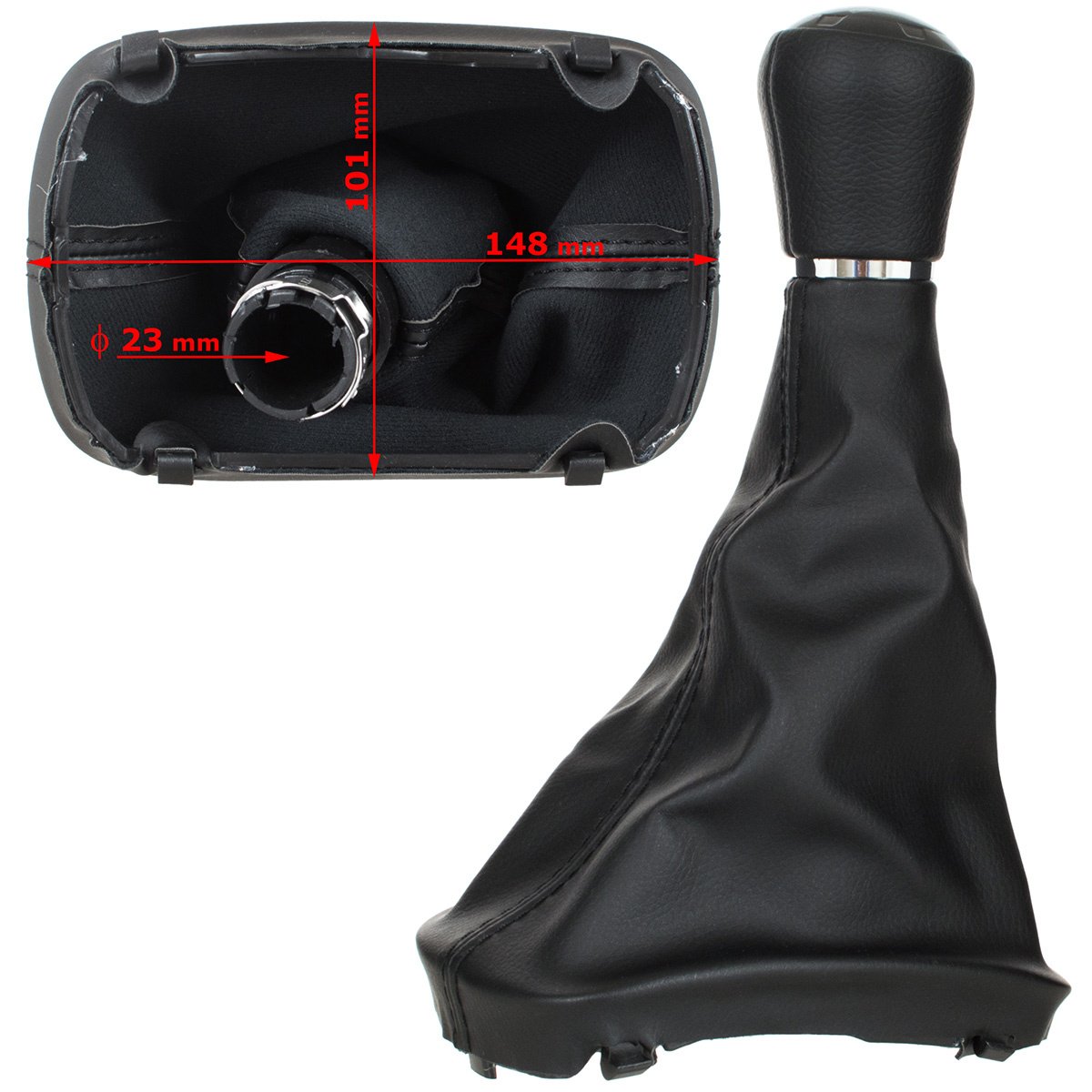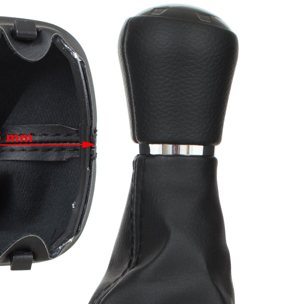 Audi A3 8L 96-03 JUODA EKO ODA 6 GREIČIŲ pavarų perjungimo svirtis + JUODA gaubto apdaila su rėmeliu SKYLĖ 23 MM