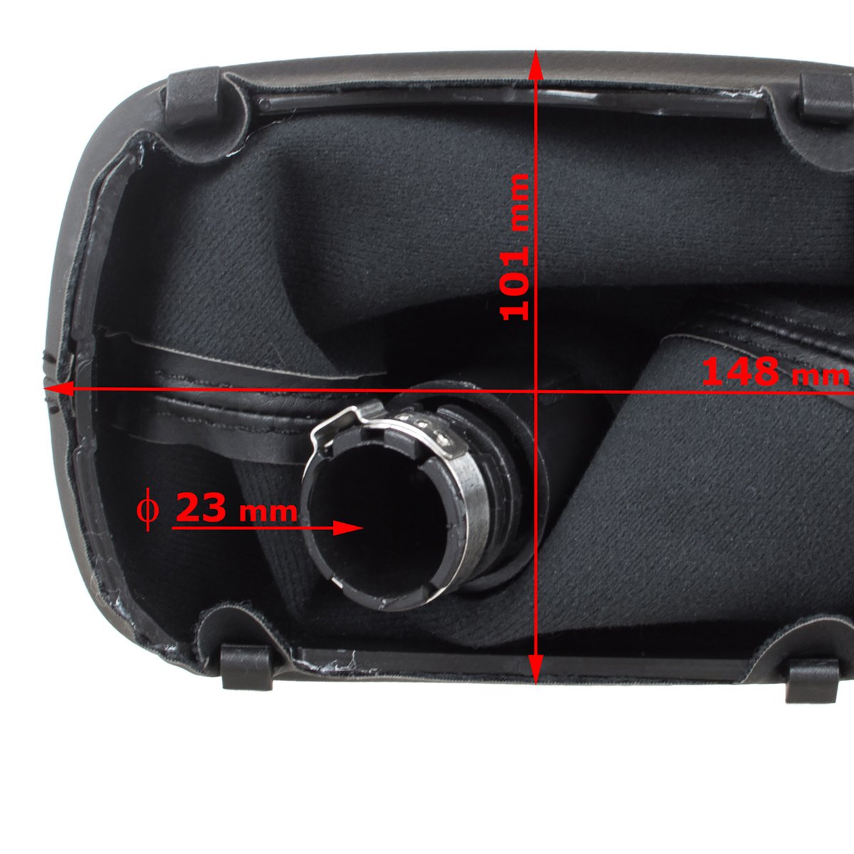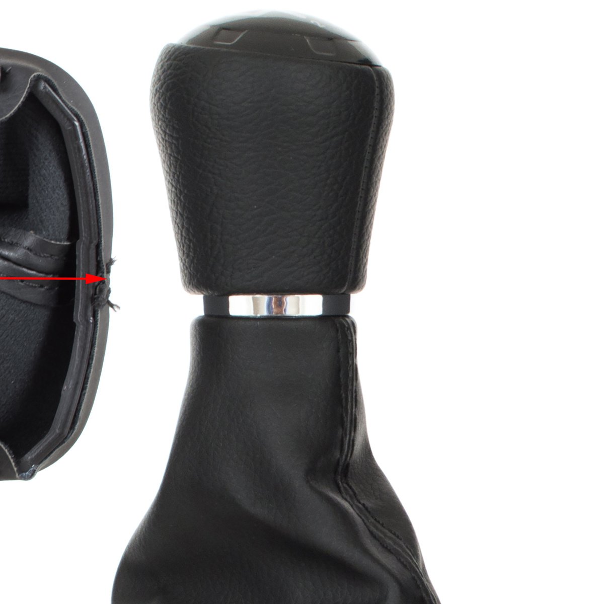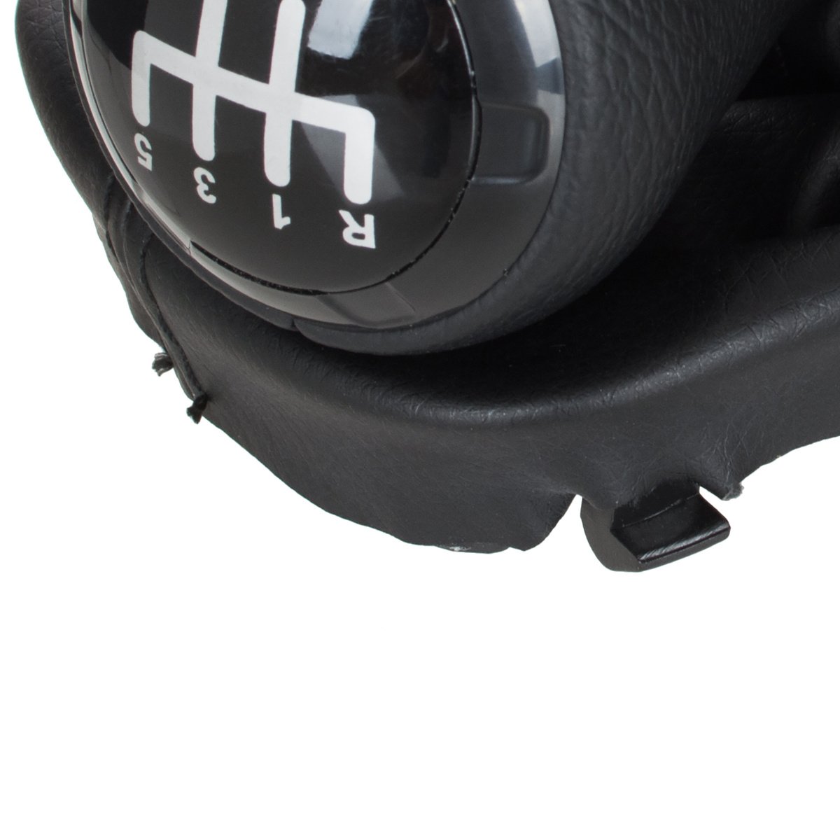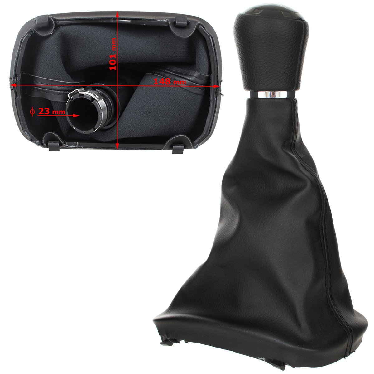 Audi A3 8L 96-03 JUODA EKO ODINĖ 5 GREIČIŲ pavarų perjungimo svirtis + JUODA gaubto apdaila su rėmeliu, SKYLĖ 23 MM