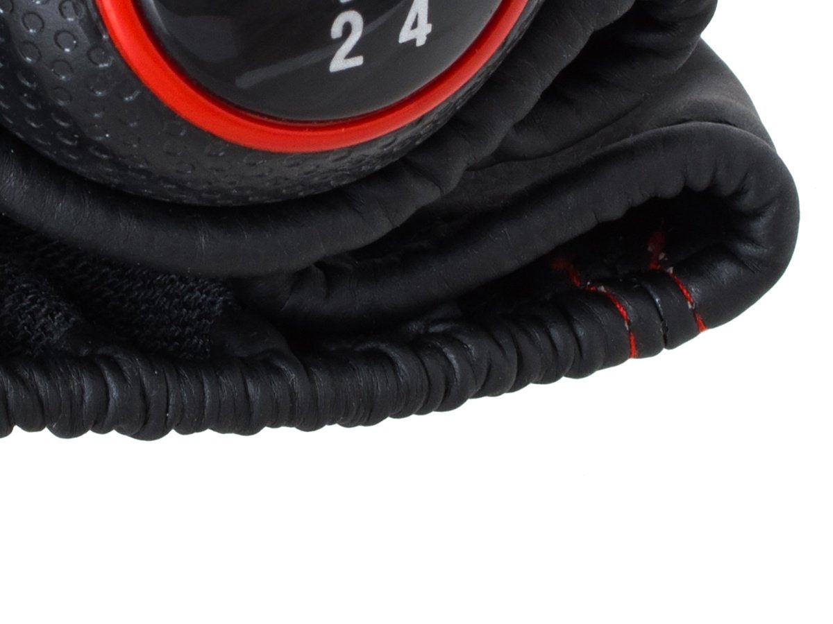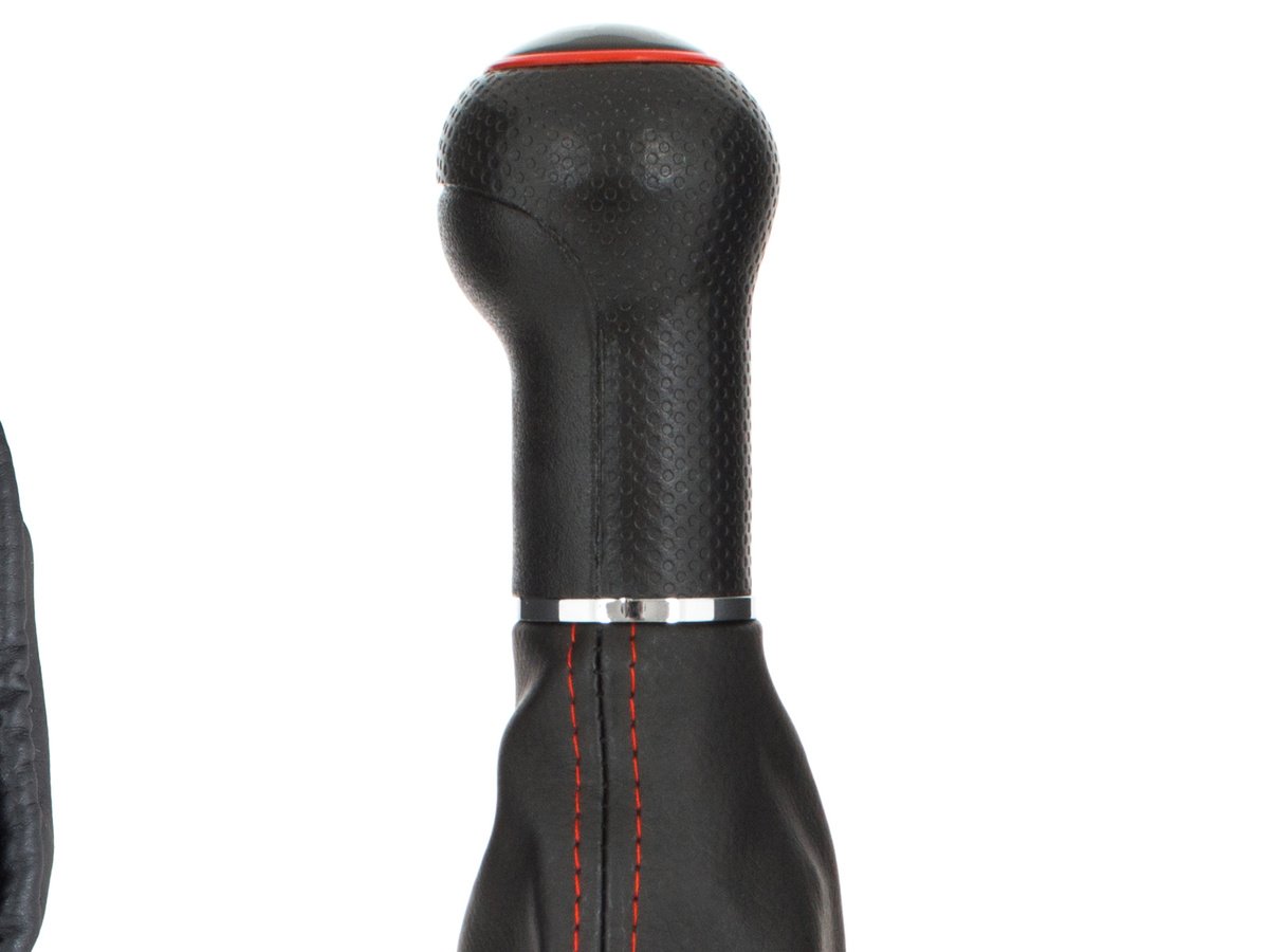 Audi A3 8L 96-03 JUODA pavarų perjungimo svirtis + JUODI APSAUGINIAI SU RAUDONU SIŪLU RAUDONAS ŽIEDAS 5 GREIČIŲ